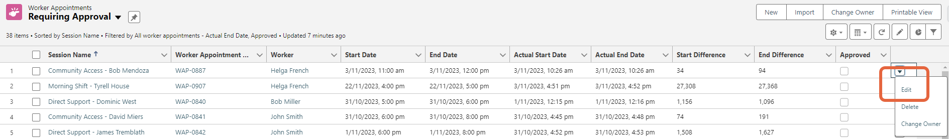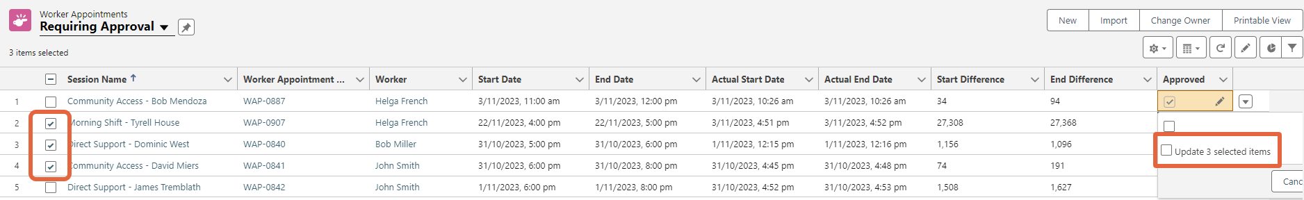 Approve completed worker appointments