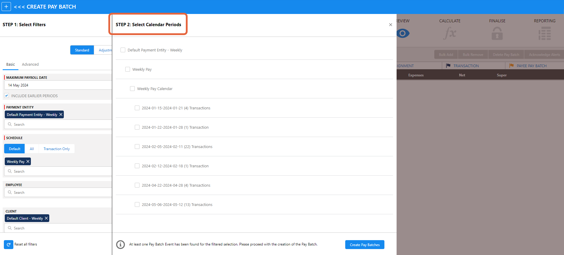 - Transaction Only: only includes payees who meet the pay batch criteria and have unprocessed pay transactions, i.e. timesheets interpretation or expense claims.